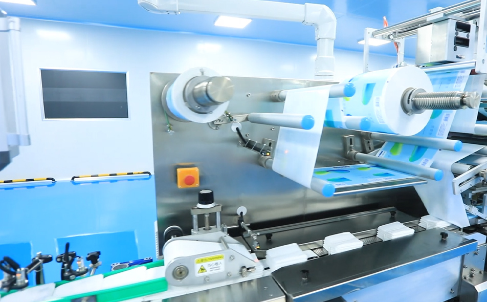 CD-2000H-16L全自動(dòng)濕巾生產(chǎn)線生產(chǎn)一次性家庭清潔用濕巾或嬰兒濕巾。是由8組原布架1切2帶自動(dòng)分切,折疊、加藥液、定長(zhǎng)度切斷、計(jì)數(shù)堆垛、再自動(dòng)輸送到包裝機(jī)進(jìn)行包裝的機(jī)器。本機(jī)原材料使用不停機(jī)自動(dòng)換料裝置,減少更換原材料的時(shí)間,有效的提高了工作效率,布接頭在線檢測(cè)和駁接口在線剔除,增加張力控制與自動(dòng)糾偏功能。所有過(guò)程從原料到包裝成品都在機(jī)器上完成,生產(chǎn)過(guò)程快速、衛(wèi)生。主折疊機(jī)與包裝機(jī)可以自動(dòng)連接使用又能在生產(chǎn)特殊規(guī)格產(chǎn)品時(shí)分開獨(dú)立使用,能使客戶最大限度利用機(jī)器、產(chǎn)生最大的效益。